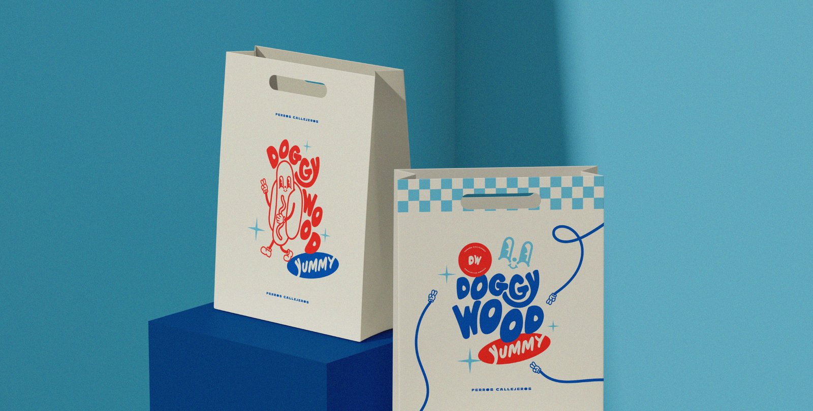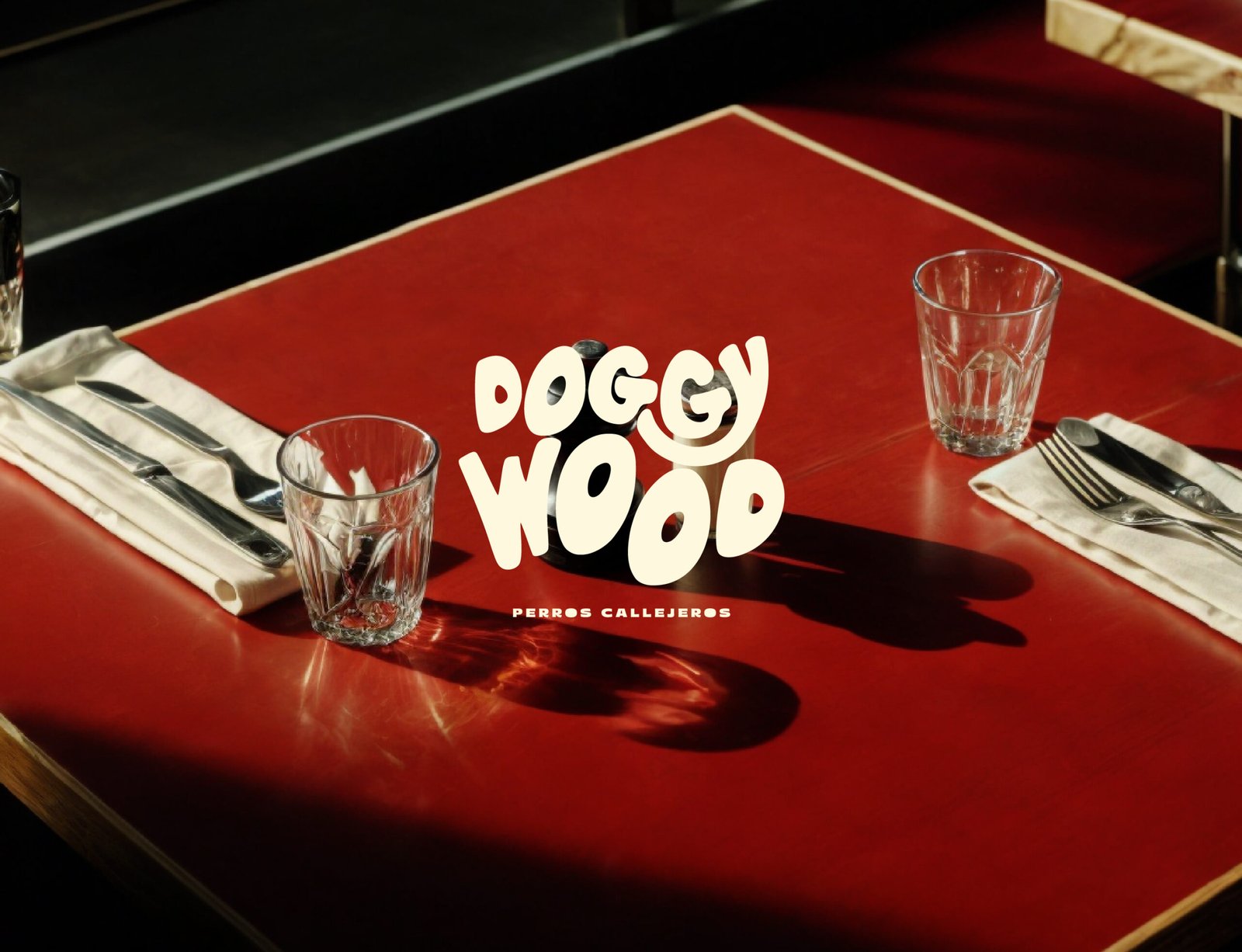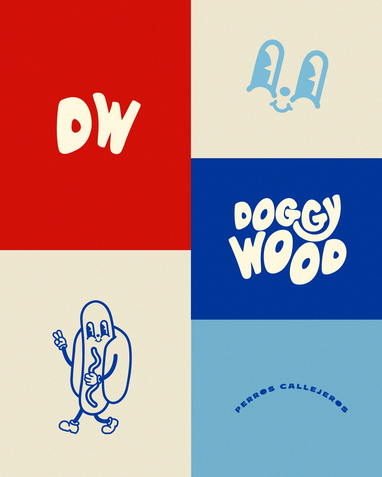 El logotipo de Doggywood se basa en una identidad gráfica que mezcla elementos lúdicos y retro con una estética moderna y vibrante. Este diseño transmite una personalidad amigable y divertida, ideal para un establecimiento de comida casual como un restaurante de hot dogs. A continuación, algunos aspectos clave de su concepto gráfico: Tipografía y Forma: La tipografía tiene un estilo redondeado y grueso, lo que le da un aire informal y amigable. Las formas orgánicas y curvas suavizan el diseño, reflejando la accesibilidad del restaurante y un ambiente relajado. Paleta de Colores: La combinación de colores intensos como el rojo y el azul aporta vitalidad y dinamismo. Estos tonos clásicos evocan un sentimiento de nostalgia, pero también hacen que el logo sea llamativo y memorable. Estilo Retro: El diseño visualmente recuerda a la estética americana clásica de los años 60 y 70, especialmente por el uso de patrones de cuadros y líneas simples, que sugieren una inspiración en los diners tradicionales. Este aspecto retro, combinado con un enfoque contemporáneo, posiciona a Doggywood como una marca fresca y actual, pero con un guiño a lo tradicional.